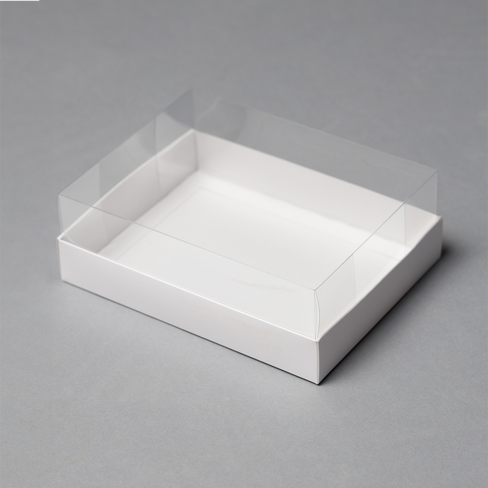 Вы также можете украсить коробку красивой лентой или добавить наклейку – эти элементы будут органично смотреться на такой стильной и изящной упаковке. Через пластиковую крышку прекрасно видно содержимое коробки. Отсутствие креплений (замков с прорезями) на крышке способствует увеличению скорости сборки и усилению жесткости конструкции – боковые стенки коробки обеспечивают прочный каркас, на котором будет держаться крышка.